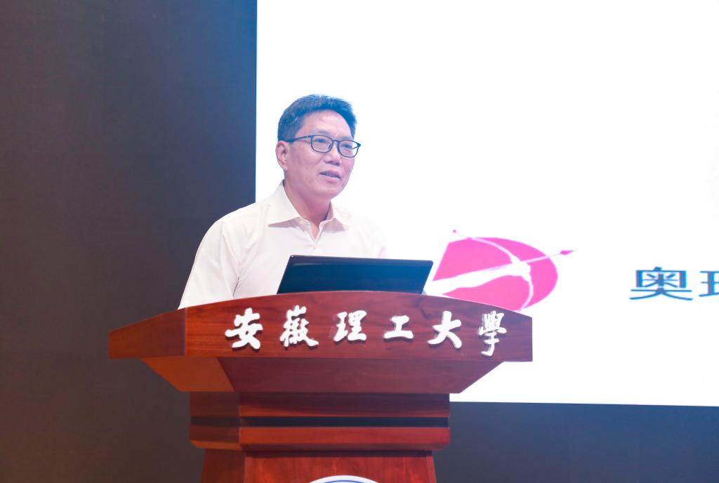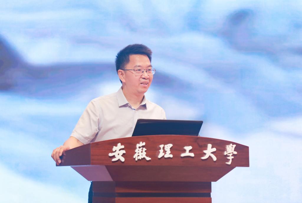 杨陆武代表煤田地质勘查专业1986级全体校友致辞。他用科技点亮梦想深情讲述作为“安理人”的科技之路。他说,母校不仅传授了我们专业技能,更让大家领悟“脚踏实地、仰望星空”的地质精神,“团结、奋进、博学、奉献”的校训淬炼了品格根基,成了大家扎根矿山、投身科研、服务能源行业的不竭动力。他表示,这笔捐赠,凝聚着86级地质专业全体同学对母校的赤子之心,惟愿以此绵薄之力,用于支持母校建设事业,为母校的发展贡献一份来自“地质人”的力量。相信在全体师生和校友的共同努力下,母校必将在新的征程中书写更加精彩的篇章。