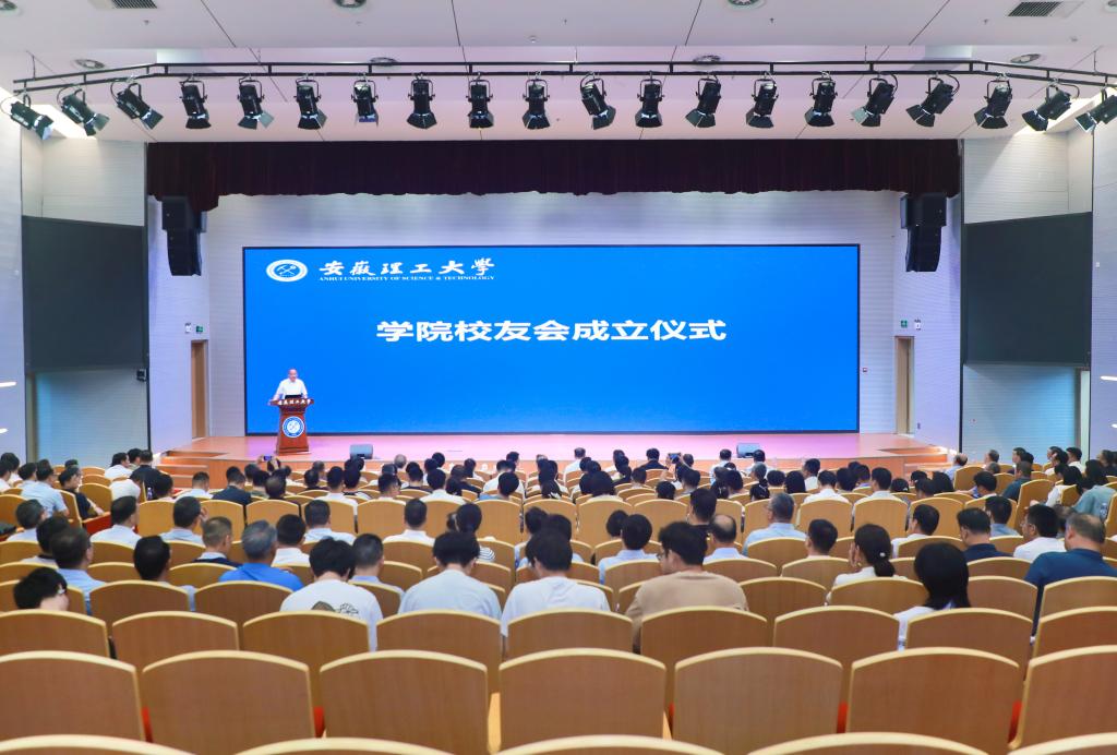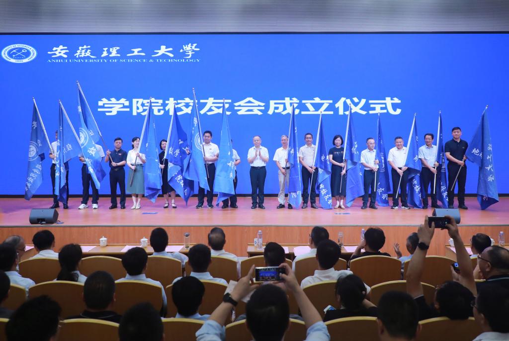 郭永存为14个学院校友会会长(地球与环境学院校友会会长盛鹏飞、安全科学与工程学院校友会会长刘泽功、矿业工程学院校友会会长张勤春、土木建筑学院校友会会长程桦、机电工程学院校友会会长王传礼、电气与信息工程学院校友会会长方运纪、材料科学与工程学院校友会会长张明旭、化工与爆破学院校友会会长刘瑞、计算机科学与工程学院校友会会长王永祥、数学与大数据学院校友会会长赵前进、外国语学院校友会会长雷鹏飞、医学院校友会会长张可佳、经济与管理学院校友会会长姚德利、空间信息与测绘工程学院校友会会长王磊)颁发聘书,并为学院校友会授旗。