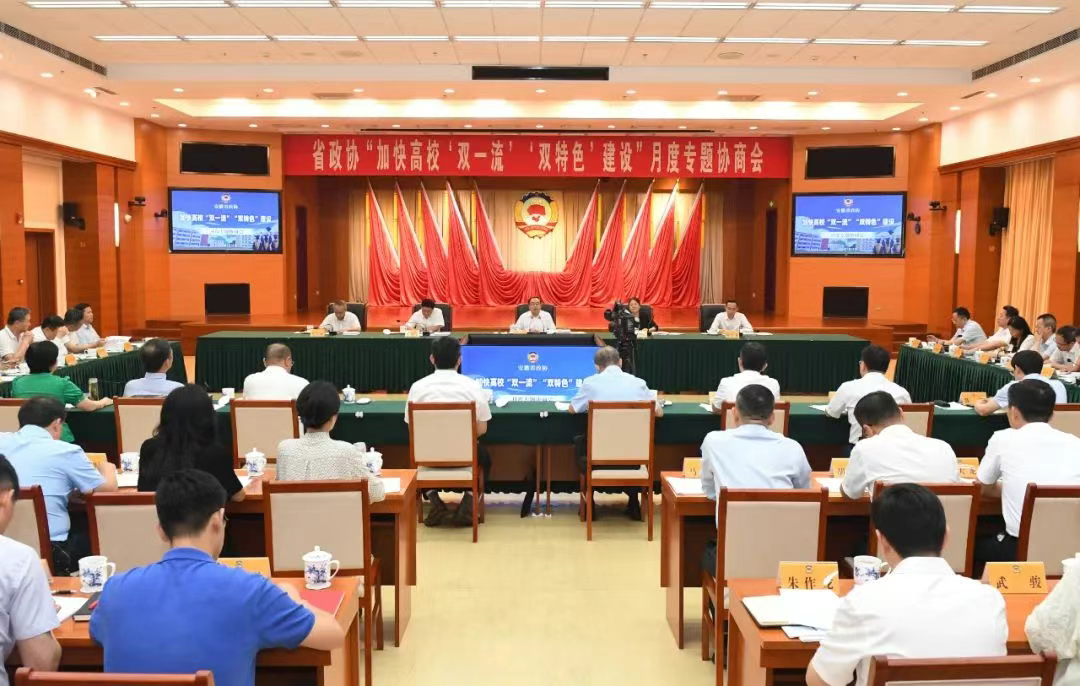 7月17日下午,安徽省政协召开“加快高校‘双一流’‘双特色’建设”月度专题协商会,省政协主席唐良智主持并讲话,省政府副省长任清华出席并讲话。校党委副书记、校长袁亮院士出席会议并现场作交流发言。