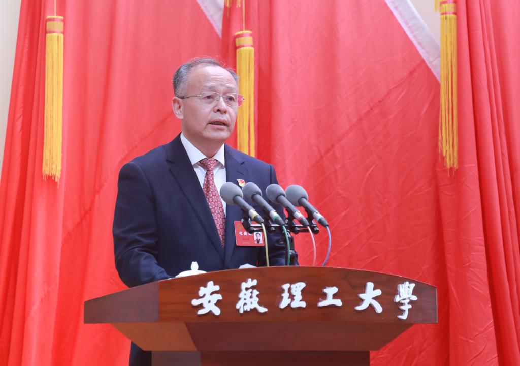 报告指出,校第七次党代会以来的五年极不平凡,是感恩奋进、实干担当的五年,是开启系统性变革、实现历史性跨越的五年。报告从坚持党的全面领导,党建引领事业发展更加有力;坚持全力推动合肥校区获批建设,构建两地办学新格局;坚持学科建设龙头地位,特色优势更加突出;坚持立德树人根本任务,人才培养模式改革不断深化;坚持下好科技创新“先手棋”,重大平台重大项目全面突破;坚持顶格推进人才引育,师资队伍建设成效显著;坚持推深做实“四个融入”发展战略,办学声誉和影响力全面提升;坚持改善办学条件,支撑保障更加有力;坚持师生至上,民生获得更加有感;坚持凝心聚力共谋发展,不断汇聚校友力量和社会资源支持办学等十个方面全面总结了第七次党代会以来学校在党的建设和改革发展方面取得的成绩。这些成绩的取得,是省委省政府、省委教育工委和省教育厅坚强领导、亲切关怀的结果,是淮南市委、市政府大力支持,海内外校友和社会各界同心助力的结果,是学校党委团结带领全体党员和师生医务员工实干有为、不懈奋斗的结果。