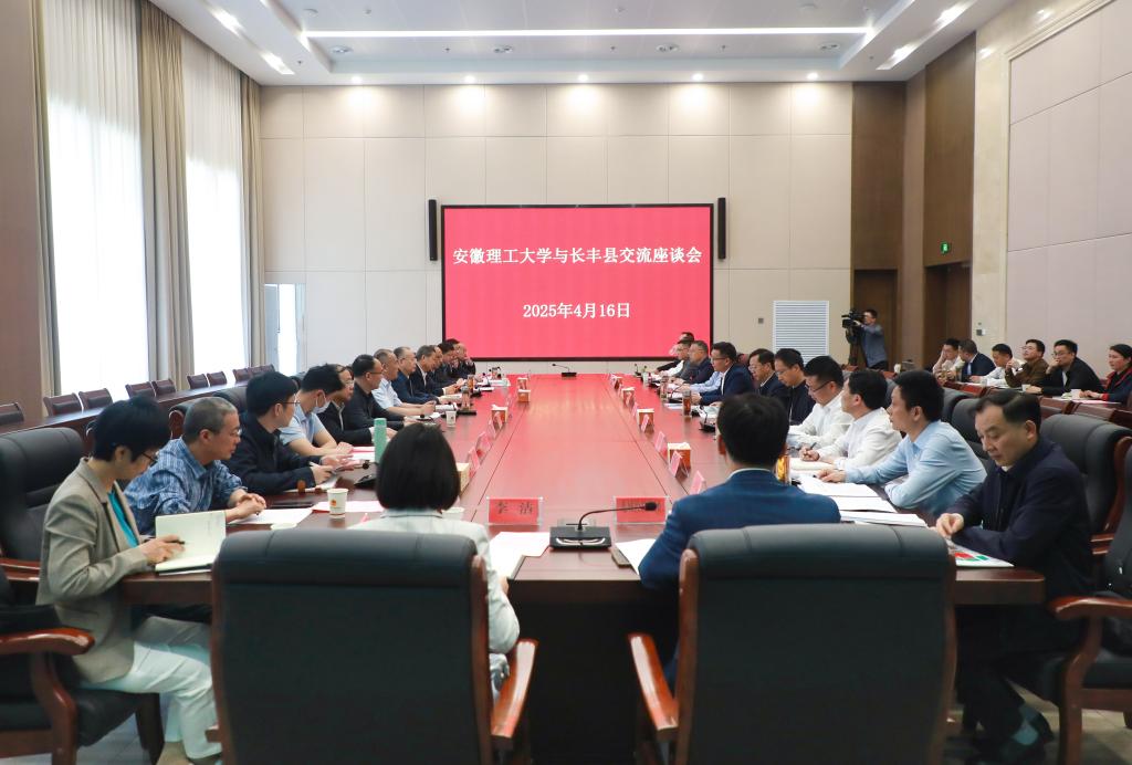 4月16日下午,学校与长丰县深化校地合作专题座谈会在长丰县委党校三楼会议室举行。校党委书记郭永存,校党委副书记、校长袁亮院士,长丰县委书记李孝鸿,县委副书记、县长李卫出席会议并讲话。校党委常委、副校长王先江、徐良骥以及长丰县委副书记江浩、副县长张召参加会议。会议由李孝鸿主持。