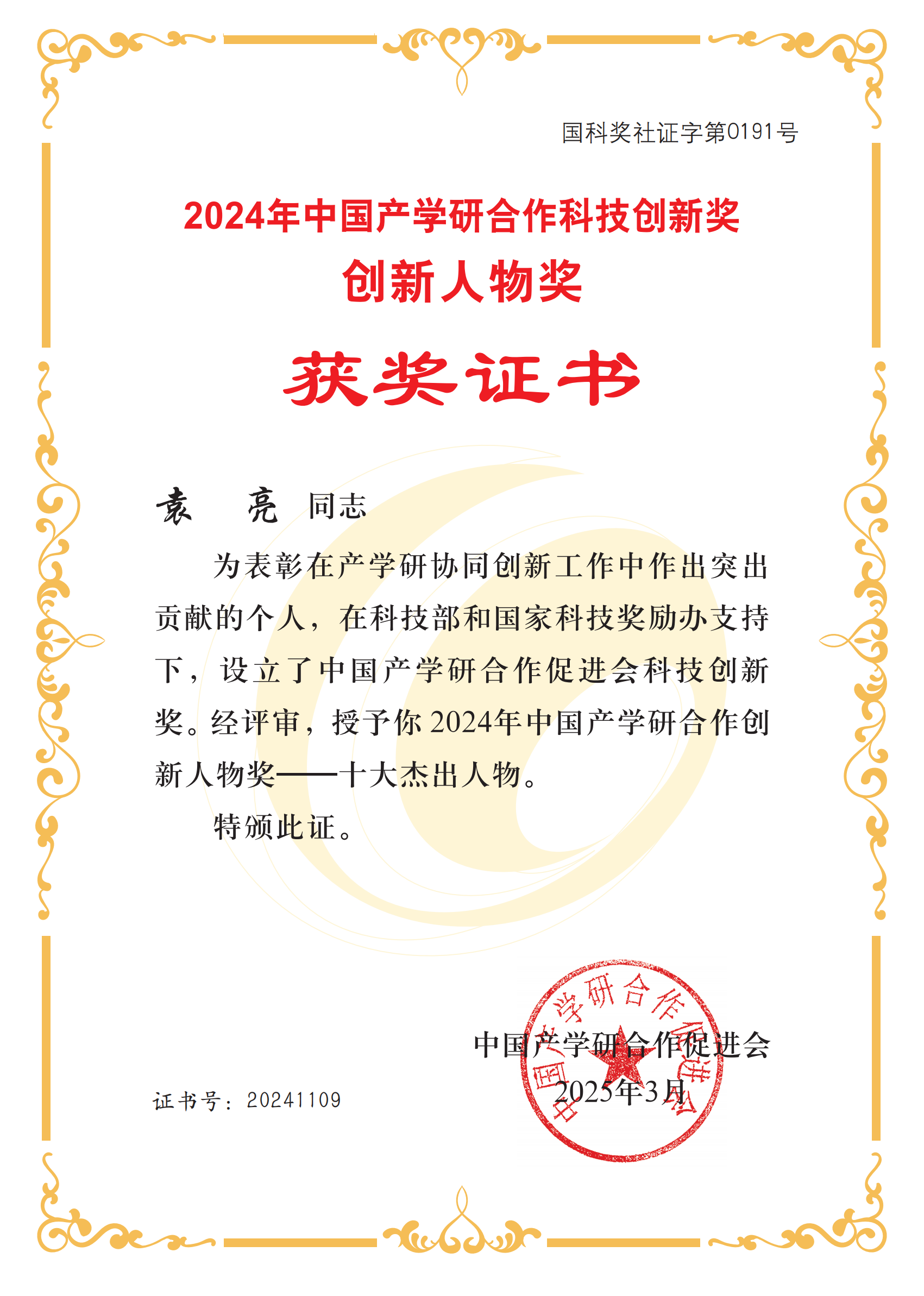 中国产学研合作促进会科技创新奖是2009年经国家科技部和国家科技奖励办公室批准设立的奖项,是中国面向产学研界协同创新的最高荣誉奖,其对于弘扬创新精神、科学精神、工匠精神,推动产学研深度融合和经济高质量发展具有重要的激励作用。