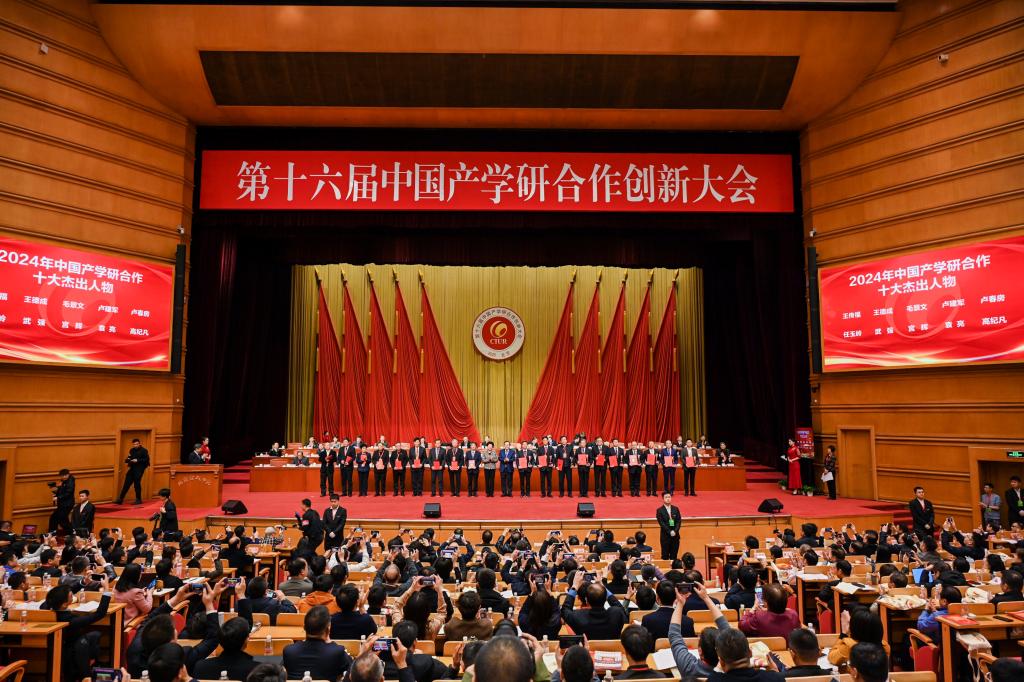 大会聚焦科技创新与产业创新深度融合主题,着力推动科技创新成为高质量发展的强大引擎,产出一批关键性、原创性、引领性重大科技成果,实现高水平科技自立自强。大会隆重表彰了2024年通过产学研深度融合做出贡献的产学研科技创新团队、创新人物和科技创新成果。学校在2024年中国产学研合作促进会科学创新奖表彰中获多项荣誉。校党委副书记、校长袁亮院士获“2024年中国产学研合作创新人物奖——十大杰出人物”,陈至立、万钢为十大杰出人物颁奖。这是产学研界对其在推进政产学研协同创新进程中,作为开拓者和引领者勇攀科技高峰,以实际行动和成效为产学研深度融合做出重大贡献的高度肯定。同时,我校冯守中教授第一完成人项目“公路隧道多维光环境下安全低碳照明关键技术与应用”、郑晓亮教授第二完成人项目“城市生命线安全工程”分别获创新成果一等奖。