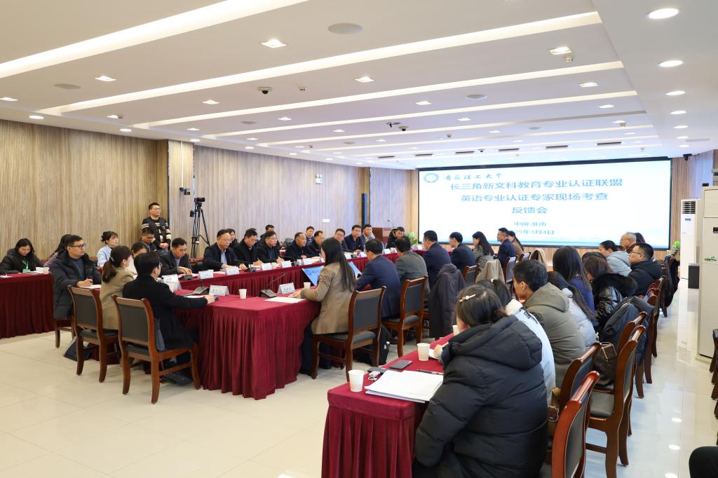 3月4日下午,召开了专业认证现场考查意见反馈会。长三角新文科教育专业认证联盟理事长、东华大学姚卫新教授出席会议并进行了全面的指导,强调了新文科专业认证的目的和意义。项义军反馈了考查总体情况和整体考查意见,专家组成员分别反馈了各自的考查意见和建议。考查组指出,安徽理工大学英语专业在国家新文科教育理念的引领下,不断优化培养目标、毕业要求和课程体系,以价值塑造为核心,致力于打造金课和特色课程,逐步形成以英语语言技能训练为基础,以语言服务和商务应用为导向的专业特色。专业在人才培养制度创新、教学方法创新以及教学活动内容和形式创新方面不断探索,践行注重创新实践、突出应用能力的素质教育,开展的内涵建设工作举措有力,培养过程和培养质量得到学生、用人单位和社会的广泛认可。考查组同时表示,专业在特色凝练特别是服务能源安全领域方面、实践教学方面、师资结构方面、国际化程度方面仍有一定的完善空间。