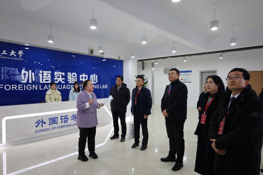现场考查期间,专家组参观考查了网络型语言实验室、听说型语言实验室、计算机辅助翻译室、同声传译实验室、商务英语实验室、跨境电商模拟实验室等各类专业实验室。专家组与学校和学院行政管理人员、系主任、专任教师、在校学生、用人单位代表、校友代表等进行了座谈,对《国际商务英语谈判》《综合英语》《应用翻译》《英国文字》等课程进行录课听课。专家组还调阅了学生试卷、课程设计、实习报告、督导听课记录、毕业设计(论文)等相关教学资料和管理制度文件。