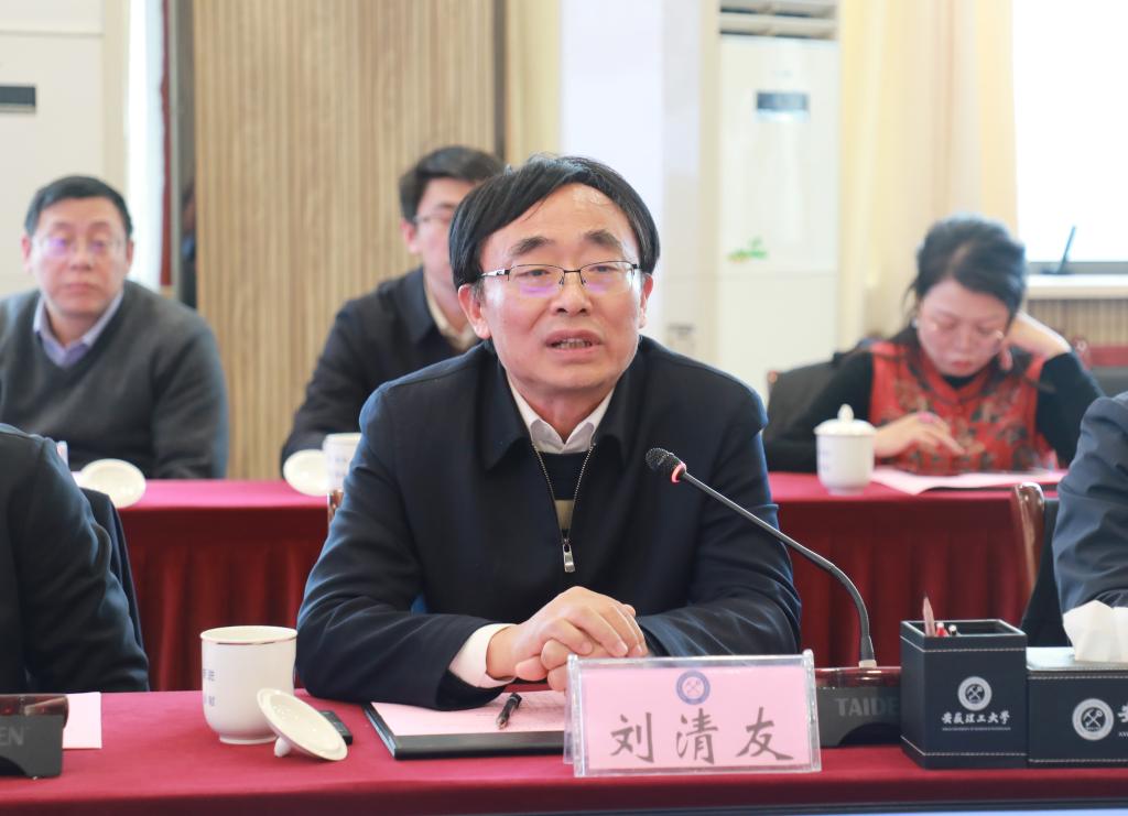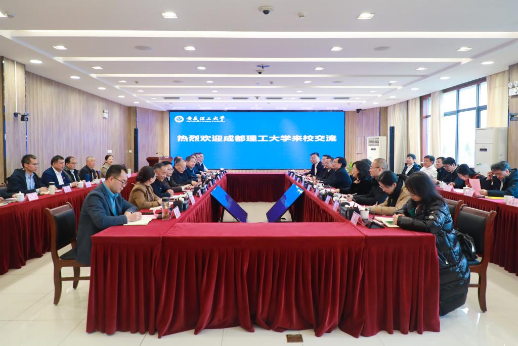 刘清友对学校的热情接待表示衷心感谢。他介绍了成都理工大学以国家战略需求为导向,突出地质资源与地质工程学科优势,推进“双一流”建设情况。他表示,成都理工大学与安徽理工大学同属地矿背景深厚的行业特色高校,同为省属高水平理工科大学,建设发展历程相似,学科专业结构相近,希望两校在人才培养、科技创新、师资引育、校际交流等方面深化务实合作,加强协同联动,携手推进高质量发展,着力服务中西部地区经济社会建设和国家重大战略。
