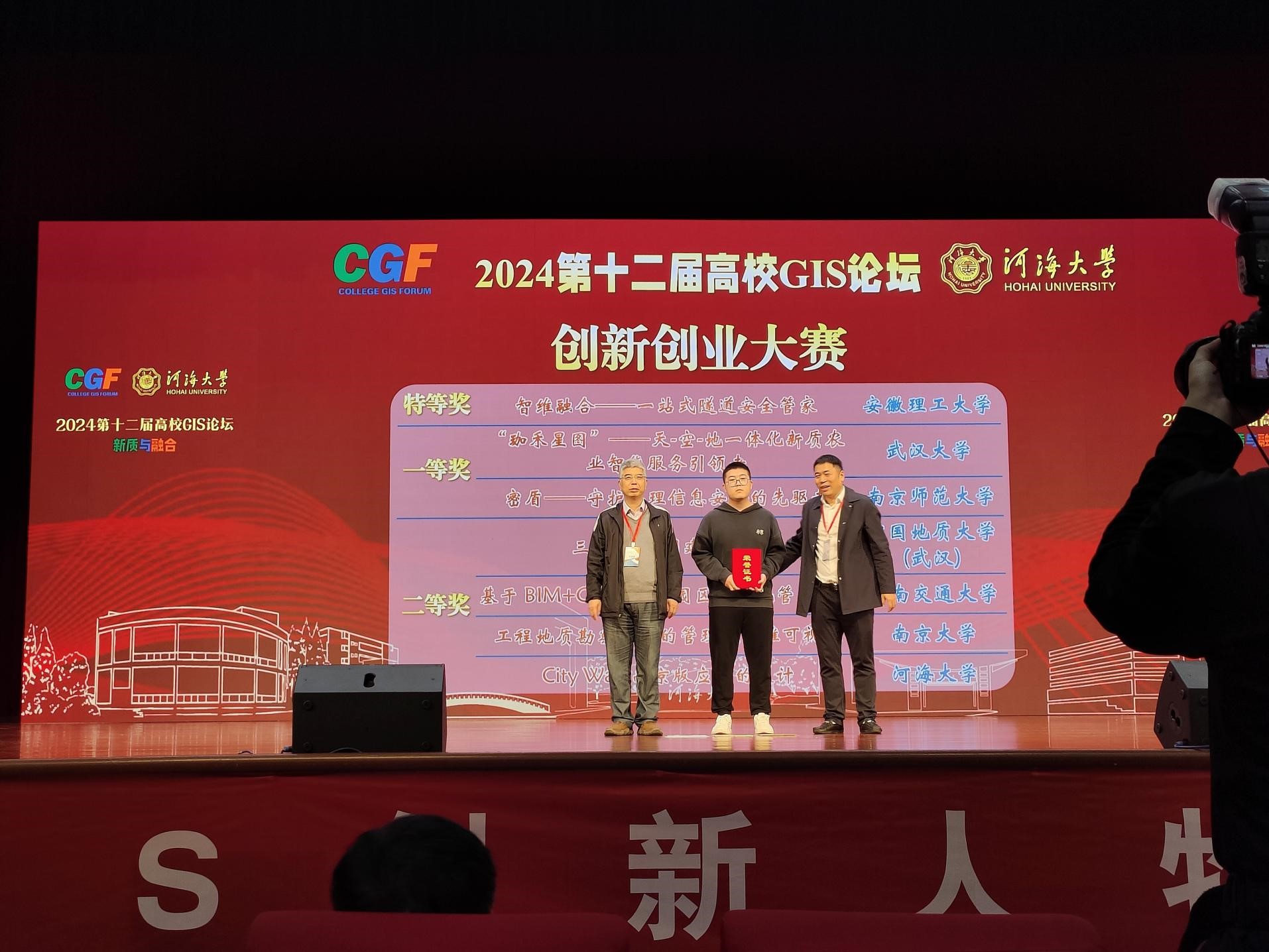 11月1日至3日,2024第十二届高校GIS论坛在江苏南京举行。我校选派的两个大学生团队在GIS融合创新与产业成长(创新创业大赛)决赛中分别荣获大赛特等奖和三等奖,为学校赢得了荣誉。