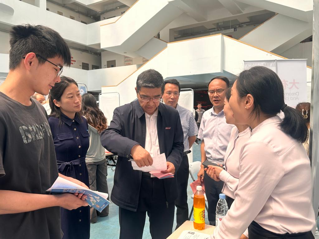 为认真落实教育部2024届高校毕业生春季促就业攻坚行动精神要求,持续为毕业生就业搭建平台,5月15日上午,学校在厚德馆大厅成功举办“百日冲刺促就业 踔厉奋发建新功——安徽理工大学2024届毕业生促就业双选会”。校党委常委、副校长董雨到现场详细了解招聘情况,询问用人单位对学校专业设置和人才培养等方面的意见建议。