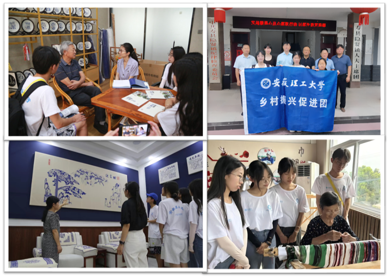 关注传统技艺,非遗传承推动文化振兴。关注传统非遗文化传承,让传统文化在乡村振兴的舞台上熠熠生辉。学院组建近10支礼赞中华优秀传统文化美育专项实践团开展非遗文化的探访与传承活动,先后建立了3个大学生美育教育实践基地。通过现场采风、人物采访、实物还原、VR再现、视频宣讲、文创制作等方式,引领木雕、蓝染、剪纸、寿县锣鼓、怀远花鼓、泗州戏、泾县油纸伞等众多非遗文化走进学生和大众视野,让传统技艺助推文化振兴。