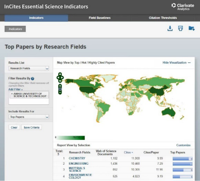 ESI数据库针对22个学科领域,对Web of Science(SCIE/SSCI)所收录全球12000多种学术期刊的1000多万条文献记录进行统计,通过论文数、论文被引频次、论文篇均被引频次、高被引论文、热点论文和研究前沿论文等6个指标,从多角度对国家/地区科研水平、机构学术声誉、科学家学术影响力以及期刊学术水平进行全面衡量,具有广泛的代表性,已经被全球普遍认可。