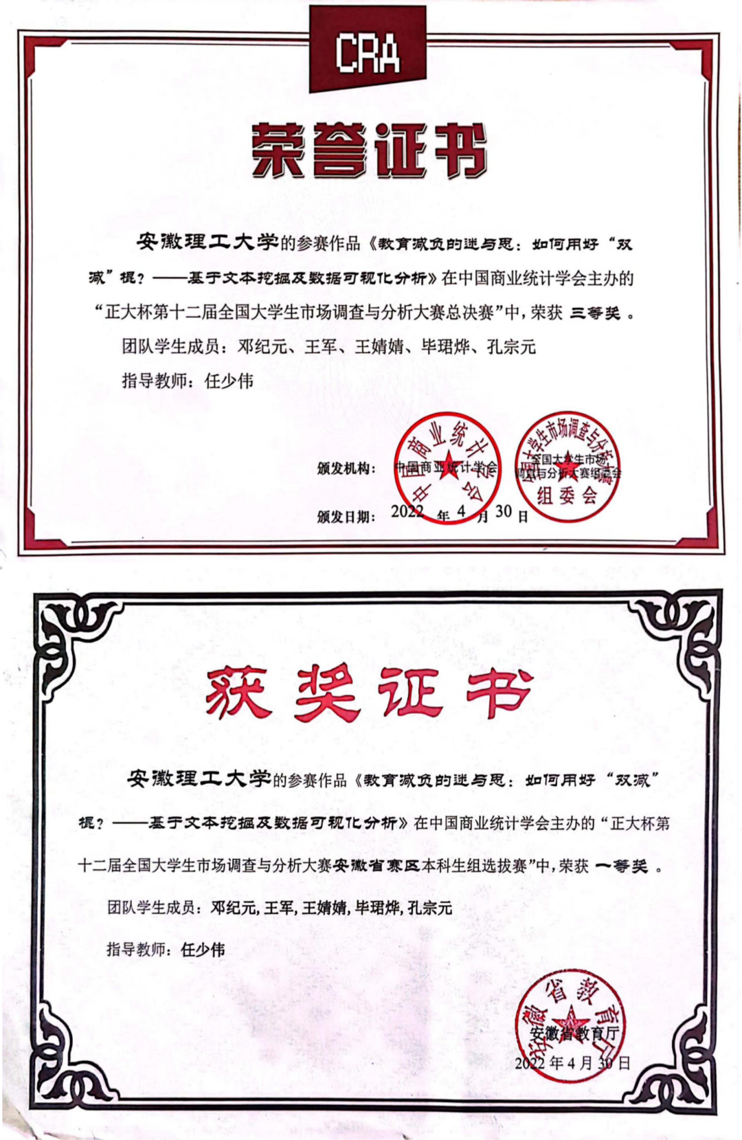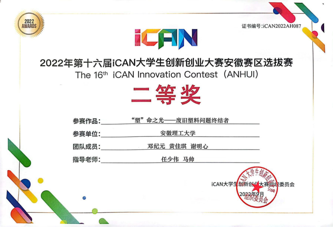 探索技术实现路径的同时,他也积极参加各类学术科技竞赛。回顾自己的竞赛生涯,邓纪元笑着说可谓“苦中作乐”。刚开始对科技竞赛并不熟悉,认为有了想法就可以参加比赛,但通过后期写申报书,项目立项,完善ppt,写演讲稿,准备答辩问题,收集各种资料,再到参加比赛,邓纪元感受到参赛是一个非常繁琐且枯燥的过程,需要事无巨细地做好每一件事情。“通过不断地修改,一次次改进,从最开始的校奖到后面渐渐获得国奖,觉得比赛阶段每天熬到两三点改申报书和ppt是值得的。”正是因为邓纪元持之以恒的努力,近两年来,他先后参加“互联网+”大学生创新创业大赛、“互联网+”生态环境创新创业大赛、“挑战杯”安徽省大学生创新创业计划竞赛、iCAN大学生创新创业大赛、全国大意见学生电子商务创新创意及创业挑战赛等一系列创新创业竞赛活动,并斩获了一个个国家级、省级奖项,其中国家级奖励4项,省级奖励8项。