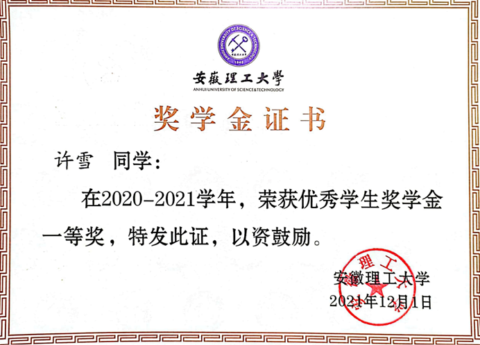 “业精于勤荒于嬉,行成于思毁于随”,这句话督促着许雪不断前进,不论严寒酷暑、风吹雨打,许雪坚持六点多钟起床,提前到达教室学习,晚上从图书馆或者自习室回到寝室后,稍微休息一下,预习明天的课程,在十二点半左右就入睡,规律的作息和充足的睡眠让许雪有充足的精力迎接明天。她和我们分享了一个她睡眠的小方法——1.5小时睡眠法,顾名思义就是让自己的睡眠的时间成为1.5的倍数,这个方法是她从曾经看过的一篇关于深度睡眠的研究报告中学来的,自那以后她就沿用这个睡眠方法至今,许雪表示这个方法对她还挺好用的,这是她的一点“小迷信”。“坚其志,苦其心,勤其力,事无大小,必有所成”,每个奋斗的日夜都不会被白费,许雪所获得的每项荣誉都是汗与泪交织的。