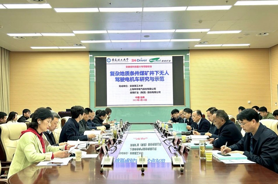 3月18日上午,我校牵头承担的安徽省科技重大专项“复杂地质条件煤矿井下无人驾驶电机车研究与示范”验收会在校采动响应国家重点实验室一号会议室召开。省科技厅高新处、省高新技术发展中心负责人出席会议并讲话。项目负责人、采动响应国家重点实验室主任郭永存教授、项目合作承担单位淮河能源有关部门负责人、上海申传有限公司负责人,项目组成员出席验收会。验收专家组听取了项目组汇报并进行质询。