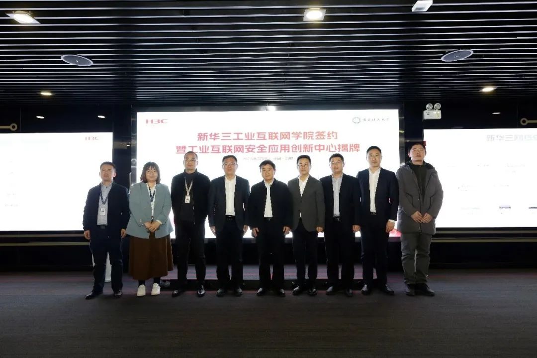 在新华三信息安全技术有限公司,工业互联网学院签约暨工业互联网安全应用创新中心揭牌仪式正式举行。安徽理工大学工业互联网研究院执行院长李敬兆,安徽理工大学公共安全与应急管理学院院长顾成杰,新华三集团工业互联网产业研究院院长、新华三工业互联网有限公司总经理刘赞,新华三集团安徽代表处总经理王磊等出席并见证签约揭牌。数字经济大潮下,作为新一代信息通信技术与工业经济深度融合的全新工业生态、关键基础设施和新型应用模式,工业互联网对于推动制造业高质量发展有着重要作用,成为推动数字经济增长的新引擎和实体经济跃升的加速器。签约前,双方先后前往安徽理工大学(合肥校区)和新华三信息安全技术有限公司参观考察,并就工业互联网发展现状和未来、如何充分发挥各自优势,以及更好地实现战略合作框架协议落实落地进行了深入交流和探讨。
