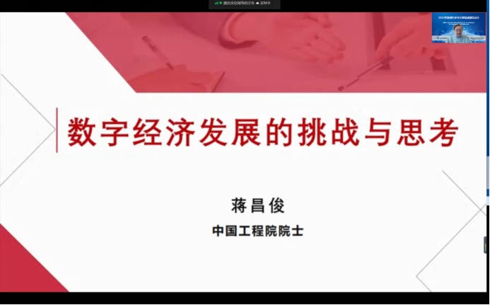 本次大会共邀请到3位国内外著名专家作大会主旨报告。蒋昌俊院士作了题为《数字经济发展的挑战与思考》的报告,总结分析了数字经济“四化”的框架,指出数字经济发展中遇到的瓶颈问题,建议应加快新型基础设施建设,大力推动制造业数字化转型,推动数字产业发展壮大。