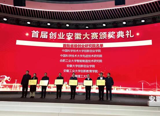 日前,安徽省人力资源和社会保障厅、安徽省教育厅、安徽省财政厅联合发文,公布全省首批10家创业研究院认定名单,我校入列其中。授牌仪式于12月11日上午在安徽中安创谷科技园全球路演中心举行。安徽省人民政府办公厅副主任周志扬、安徽省教育厅副厅长解平,安徽省财政厅二级巡视员彭高俊,安徽省人力资源和社会保障厅副厅长程连政、陈宏出席颁奖典礼。解平、彭高俊为6家首批省级创业研究院(本科院校类)授牌。