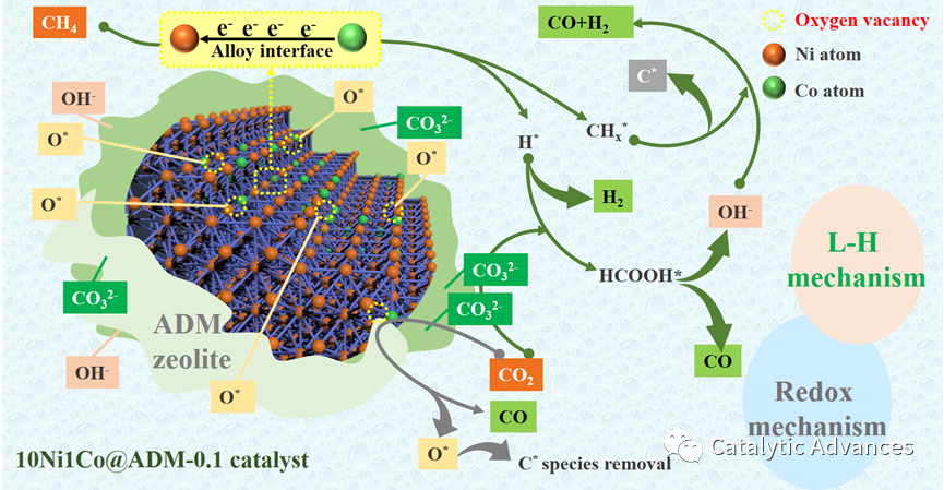 10Ni1Co@ADM-0.1催化剂催化甲烷-二氧化碳重整制备合成气反应机制