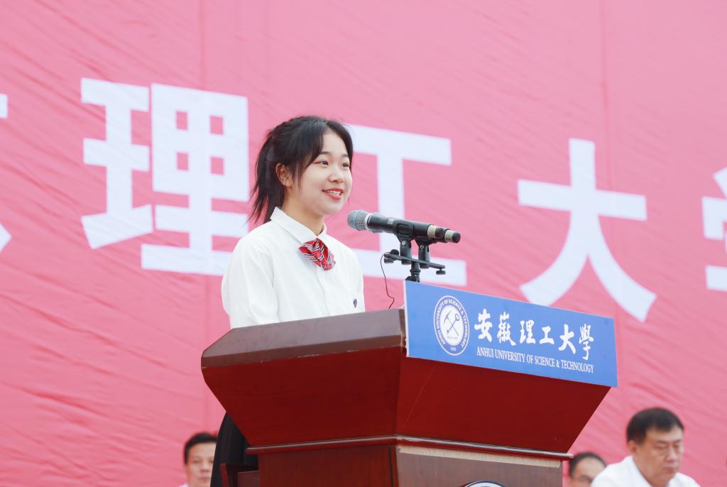 开学典礼结束后,经济与管理学院吴思蕊激动地说:今日,我们齐聚一堂,见证人生的高光时刻。校长的讲话令我印象深刻,安理的自信,源自于深厚的历史底蕴,77年的建校历史,和著名高校合肥工业大学同根同源;安理的自信,扎根于一代又一代优秀的安理学子,踔厉奋发、笃行不怠,为中国科技事业作出重要贡献;安理的自信,追寻于传承“团结、奋进、博学、奉献”的校训。时代各有不同,青春一脉相承,在百年未有之大变局下,我们这届新安理学子接过时代的接力棒,将青春活力融入时代脉搏,用创新驱动时代发展,敲响时代最强音,在青春的赛道上跑出安理人的最好成绩,韶华不负,青春无悔!