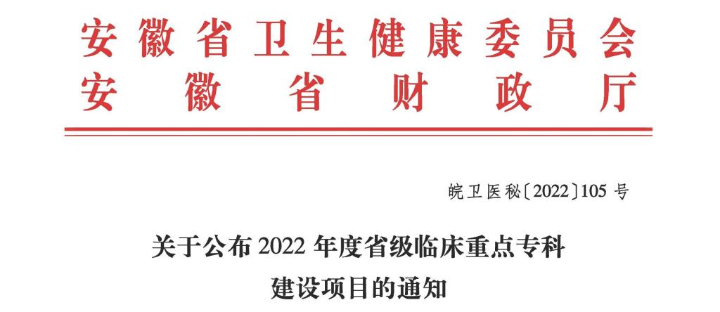 学校一附院获批安徽省2022年度省级临床重点专科建设项目