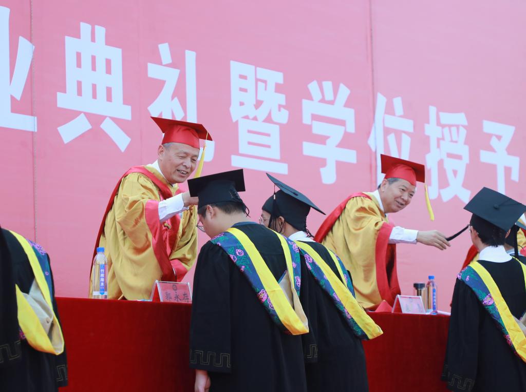 郭永存、袁亮等校领导为毕业生扶苏拨穗