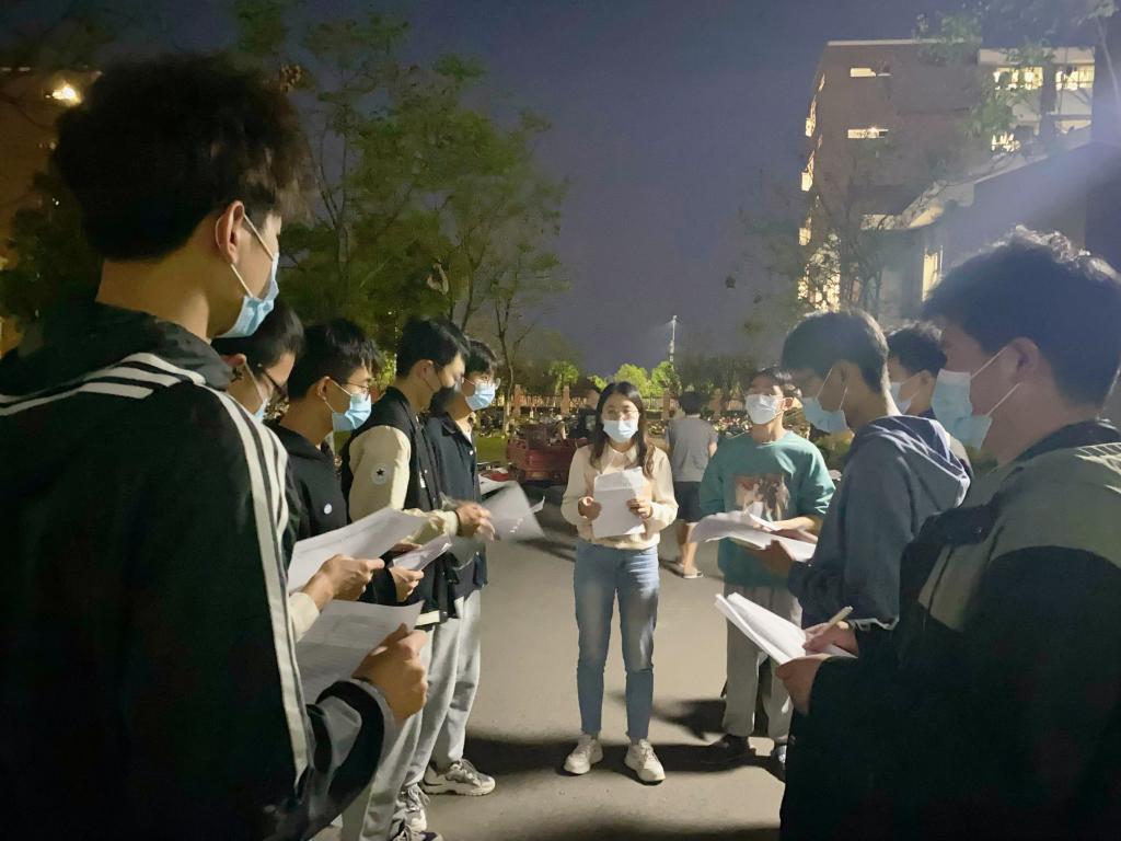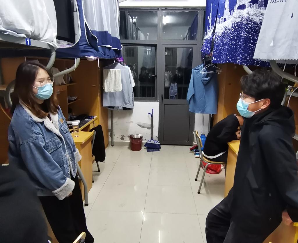 机械学院的小伙子们多,相较于害怕,他们更多的是热血满志。“我们能为抗疫做些什么吗?”“上好网课,戴好口罩,遵守校规校纪,这就是我们青年学生的抗疫使命。”他们还向我分享近期的“小确幸”,制作的航模可以起飞啦,参加的比赛快要收尾啦,喜欢的游戏又出了新人物啦……在欢声笑语之中,疫情的阴霾在青春点滴的美好之中渐渐消散。离开宿舍楼时已近十一点,身后的学生拿着帐篷、被褥一路叽叽喳喳跟着,他们担心为他们留校的辅导员今夜无处可睡。爱是双向的奔赴,打赢疫情阻击战,需要我们同心同力、同向同行。
