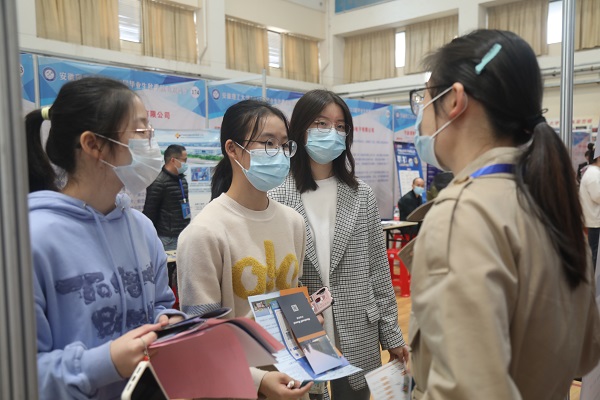 毕业生与用人单位洽谈交流 (摄影:李阳)