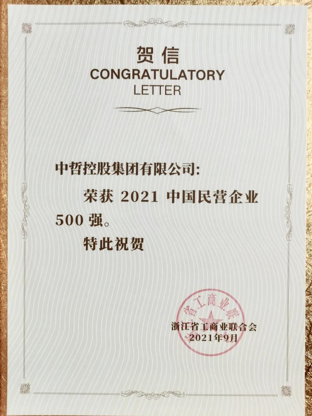 校友企业中哲集团荣膺2021中国民营企业500强、制造业民营企业500强两项殊荣