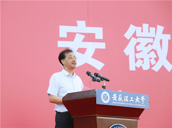 在热烈的掌声中,袁亮发表了热情洋溢的讲话,欢迎2021级新同学加入安徽理工大学这个大家庭,并结合党史、校史等内容,为新生上了第一堂精彩的思政课。