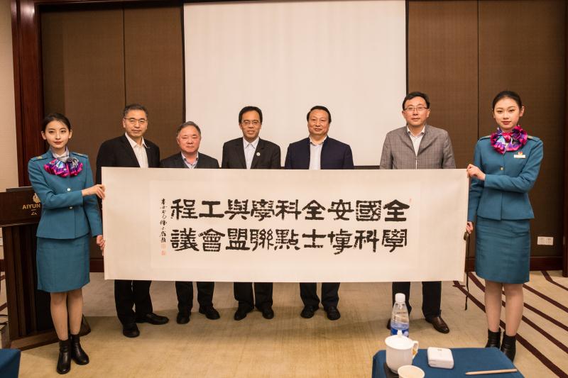 中国民航大学将著名书法家韩必省书写的会议题名书法作品作为“盟旗”交接给我校,学校将于2022年举办第三届全国安全科学与工程学科博士点联盟会议。
