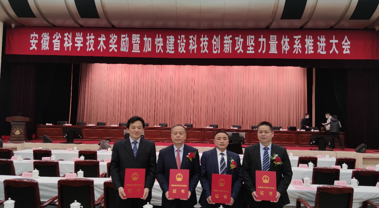 安徽省委书记、省人大常委会主任李锦斌,省委副书记、省长王清宪出席,省委副书记、省委党校校长程丽华,省委常委、常务副省长、省政协副主席邓向阳等领导同志出席会议,并为获奖科技人员颁奖。校党委书记郭永存,校党委副书记、校长袁亮等获奖人员参加大会并上台领奖。李锦斌、程丽华分别为我校获奖人员代表郭永存、袁亮颁发获奖证书。校党委常委、副校长郑明东参加了会议。