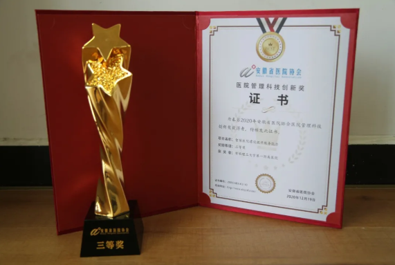 开幕式上,举行了安徽省医院协会2020年颁奖仪式,我校第一附属医院荣获2020年度“医院管理科技创新奖三等奖”。