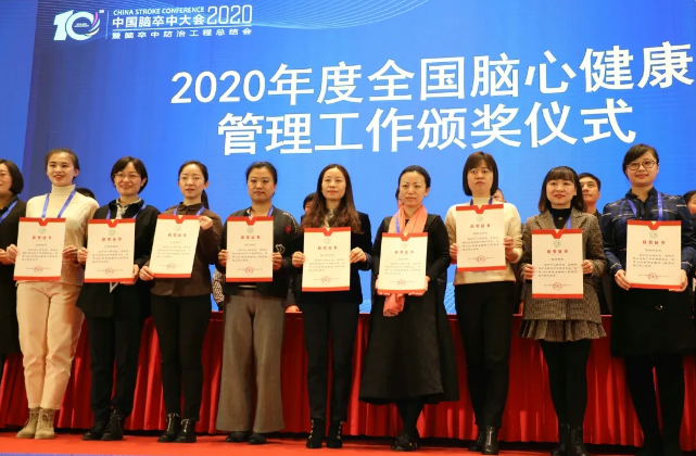 医院脑心健康管理师郭小玲(右五)获得“2020年度优秀脑心健康管理师二等奖”