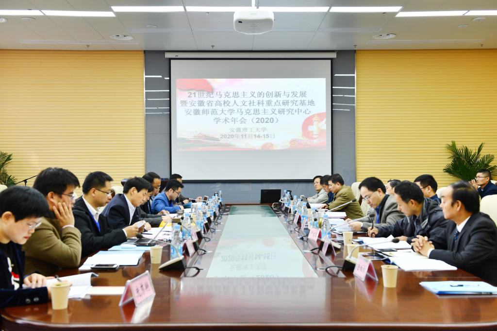 11月14日至15日,21世纪马克思主义的创新与发展暨安徽省高校人文社科重点研究基地安徽师范大学马克思主义研究中心学术年会(2020)在我校国家重点实验室学术报告厅召开。校党委常委、副校长宫能平出席会议并致辞。安徽省委宣传部舆情信息处副处长单兆伟应邀出席会议。会议由安徽师范大学马克思主义研究中心与安徽理工大学马克思主义学院联合举办。我校专兼职思政课教师与来自全省高校的中心研究员、青年教师代表近40人参加了会议。