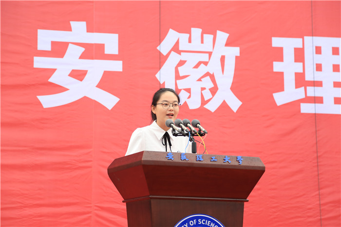 在校生代表、医学院孙宇菲向刚踏入安理校园的学弟学妹们表达了热烈的欢迎,希望大家一起撸起袖子,共同努力,奋勇前行,在四年之后目睹梦想的瓜熟蒂落!