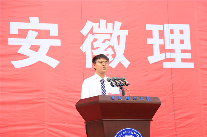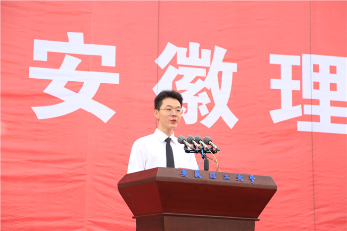 本科生新生代表、人工智能学院余维哲,研究生新生代表、机械工程学院赵东洋分享了成为“安理人”的喜悦与光荣,表示将珍惜时光好好学习,做勤学之人,练就过硬本领,为实现安理梦、中国梦砥砺前行。