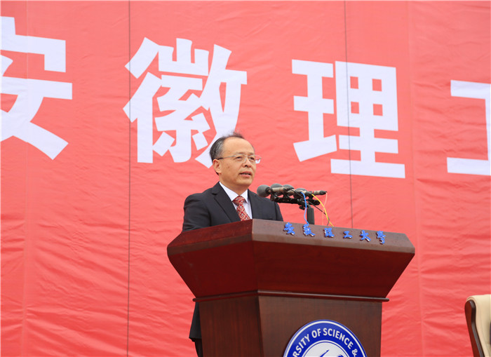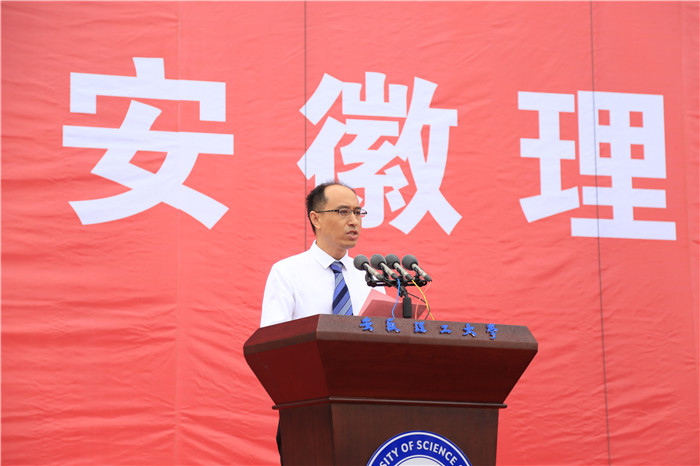 郭永存作了精彩讲话,为新生上了第一堂思政课。他代表全校师生员工,代表校长袁亮院士,向2020级新同学致以最热烈的欢迎!