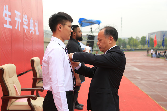 典礼上,郭永存为本科生新生代表、研究生新生代表、留学生新生代表佩戴了校徽。全场新生一同佩戴上了校徽。戴上校徽不仅是一种勉励,更是全体新生身为“安理人”所肩负起的使命和担当。