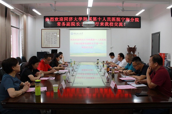 8月11日上午,同济大学附属第十人民医院宁海分院常务副院长于靖一行来校交流。校党委常委、副校长宫能平热情会见了来宾。