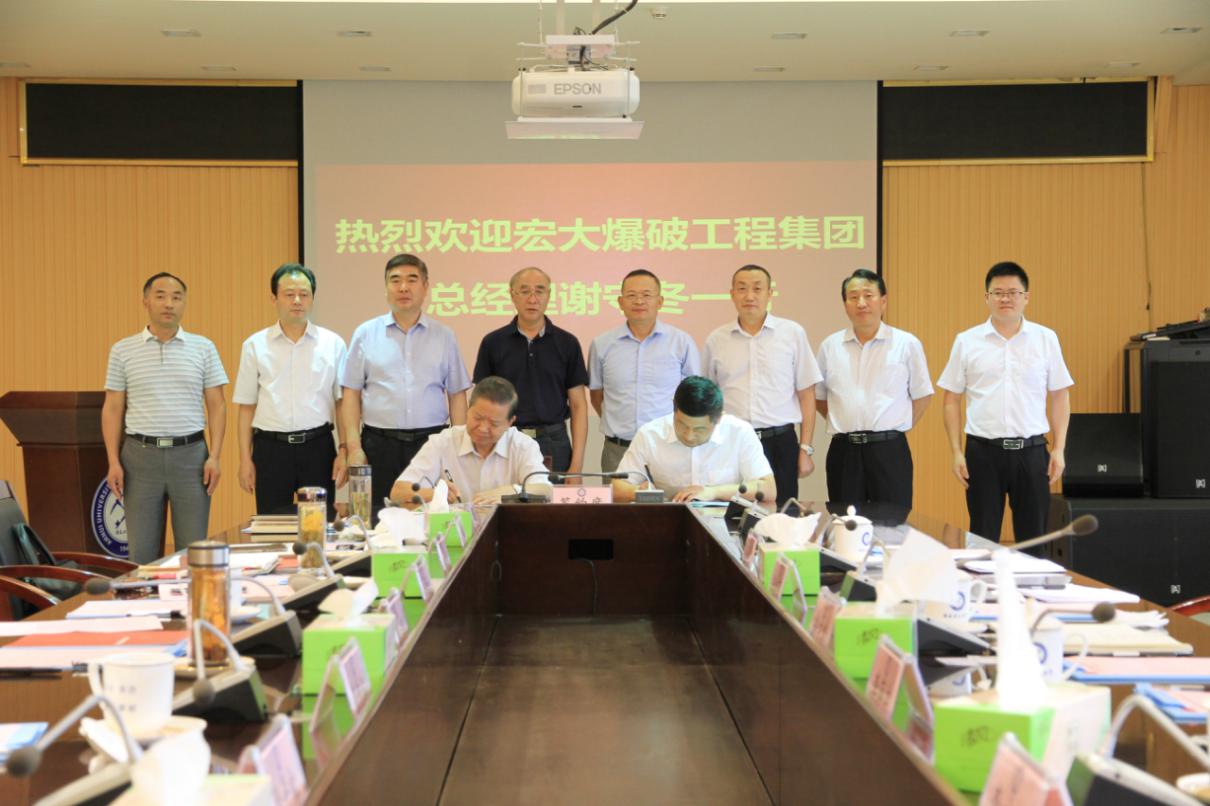 袁亮与谢守冬签订校企合作战略协议,郑明东与李萍丰签订“宏大爆破”奖助学金捐赠协议。