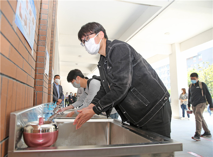 本次演练真实模拟学生返校后的场景,设计了学生入校报到、入住学生公寓、食堂就餐、图书馆阅读学习、未被收治学生进入医学观察病房等5个场景,并分别在各相关场所设置了测温点、排队间隔线和留观点等,重点对返校学生出现体温异常等突发情况的应急处置进行了全流程实地操作。