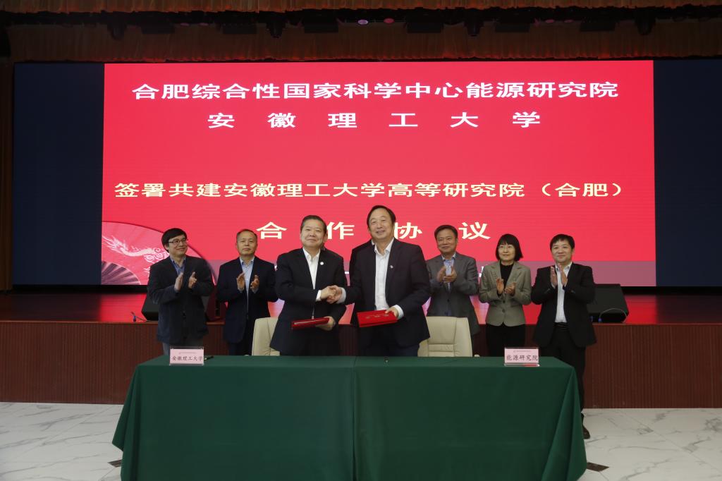 能源研究院院长李建刚院士与校长袁亮院士分别代表双方,签署合肥综合性国家科学中心能源研究院与安徽理工大学共建安徽理工大学高等研究院(合肥)合作协议。
