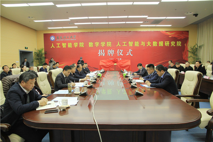3月30日上午,学校在国家重点实验室1号会议室隆重举行安徽理工大学人工智能学院、数字学院、人工智能与大数据研究院揭牌仪式。淮南市副市长邬平川,新华三技术有限公司中国区副总裁、安徽代表处总经理盛剑晖,新华三技术有限公司安徽代表处经理李文涛,北京桃花岛公司总裁俞跃舒,校党委书记郭永存,党委副书记、校长袁亮,副校长孟祥瑞,党委常委、副校长郑明东、吴照明、宫能平、董雨,党委常委、纪委书记周旭出席揭牌仪式。孟祥瑞主持揭牌仪式。