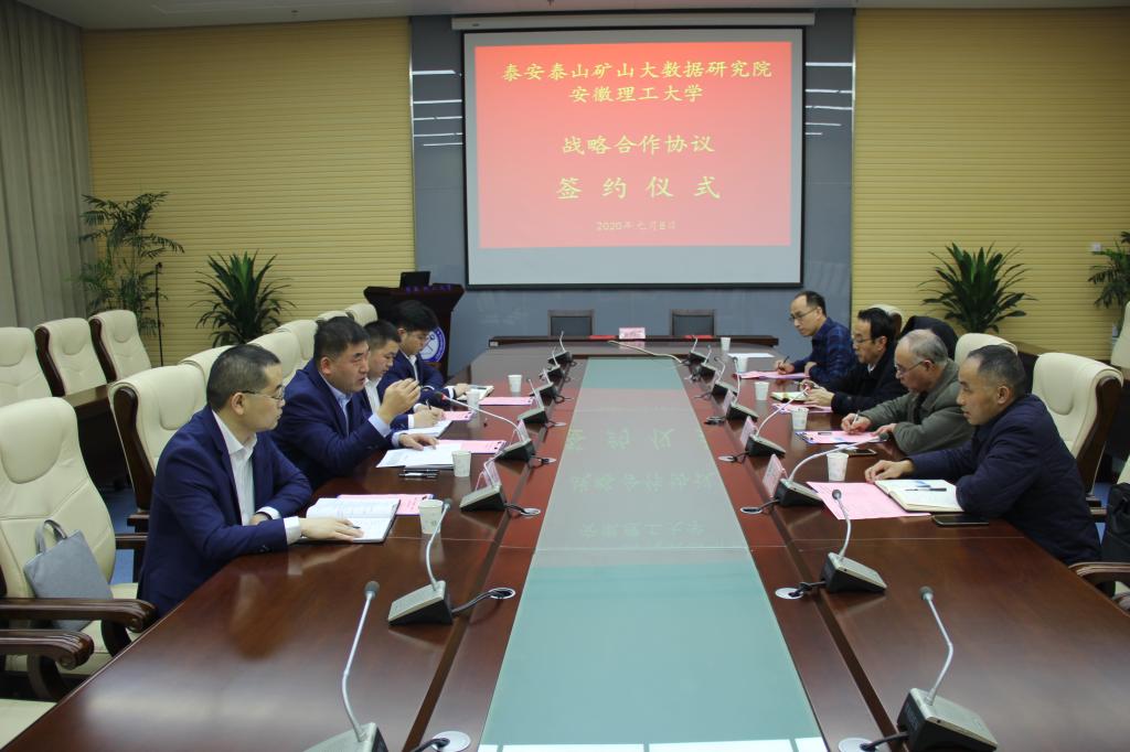 1月8日下午,我校与泰安泰山矿山大数据研究院有限公司战略合作协议签署仪式在国家重点实验室第一会议室举行。校党委常委、副校长郑明东,泰安泰山矿山大数据研究院有限公司董事长刘广成等出席仪式。
