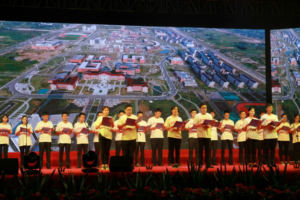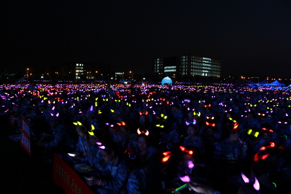 9月12日晚7点,2017级新生开学典礼在至诚体育场隆重举行。现场绚丽夺目的舞台灯光交汇相错,五颜六色的荧光头饰、荧光棒交相辉映,在夜幕下汇聚成一片星光璀璨的星河。5598名本科新生、936名研究生新生带着青春的梦想,在这里实现华丽转身,谱写华美乐章。