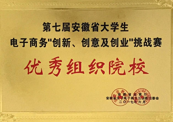 6月3日至4日,安徽省第七届电子商务“创新、创意及创业”挑战赛在合肥工业大学成功举办。我校选派的10件作品获得一等奖3项、二等奖4项、三等奖3项,学校获得优秀组织奖。