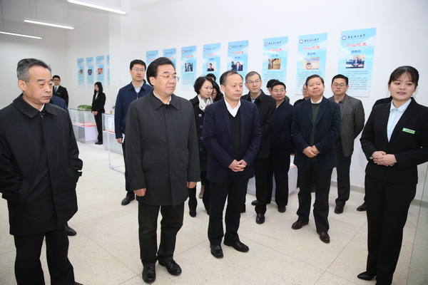 信长星一行首先来到学校重点实验室,一边观看学校办学成果展,一边听取校领导工作汇报,不时就关心的问题进行询问。当了解到安徽理工大学已有72年办学历史,为国家培养了一大批杰出人才,为煤炭科技进步、安徽地方经济社会发展做出了突出贡献时,他感到非常高兴,对学校紧紧围绕经济社会需求开展科学研究和技术服务表示充分肯定。