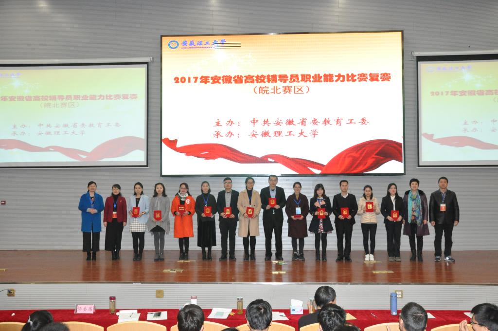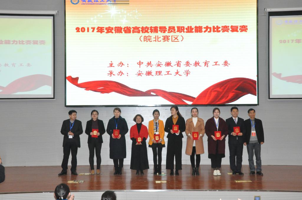 3月11日至13日,由安徽省委教育工委主办、安徽理工大学承办的2017年安徽省高校辅导员职业能力大赛复赛(皖北赛区)在我校新校区成功举行。经皖北地区25所高校选拔推荐的39名辅导员参加了本次大赛的激烈角逐。校长王其东出席大赛并为获奖选手颁奖。省教育厅思政处副调研员张英明作了总结发言。