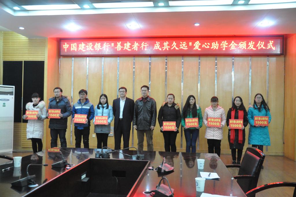 建行淮南市分行相关部门负责人;校财务处、学生处负责人,各学院资助工作联系人和20名受助学生参加了仪式。