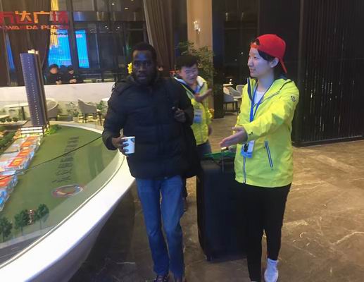 志愿者为外籍参赛者提供引导服务