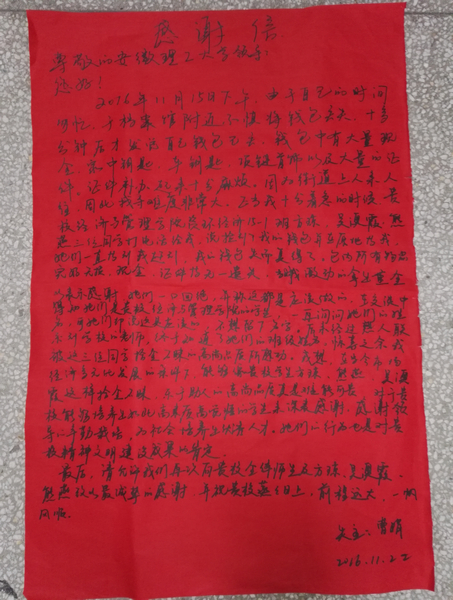 感谢信(摄像:李双双)
